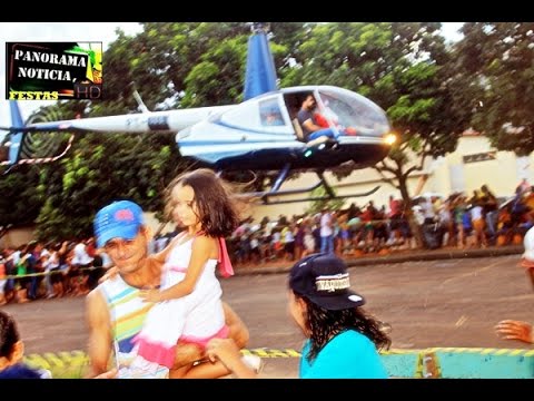 Papai Noel chega de helicóptero para abrir o comércio para as vendas de fim de ano em Panorama