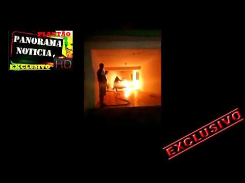 Um carro pegou fogo agora há pouco no quintal de uma casa na Rua Quintino Maudonnet no bairro Centro em frente a quadra coberta.